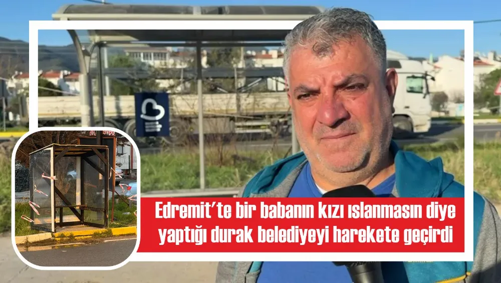 Balıkesir'in Edremit ilçesinde bir baba, okula giden kızının otobüs beklerken ıslanmaması için ahşap ve şeffaf brandadan bir durak inşa etti. Babanın bu fedakarlığına kayıtsız kalmayan belediye ekipleri, bölgeye modern bir durak yerleştirdi.