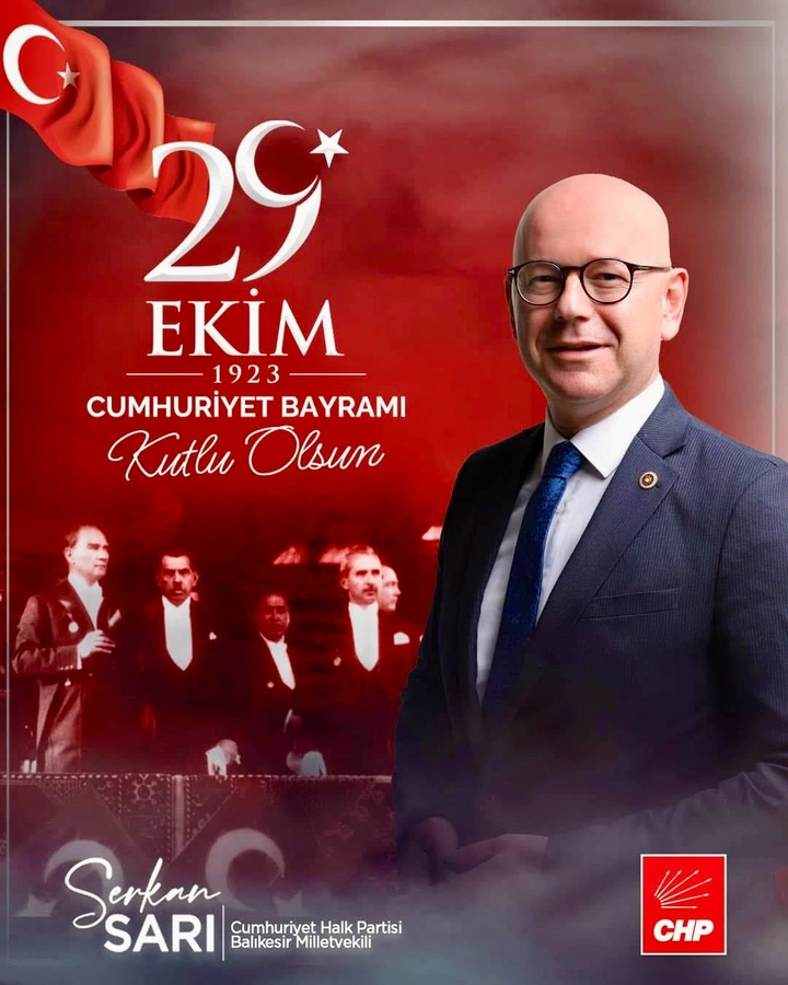 Cumhuriyet Halk Partisi Balıkesir Milletvekili Serkan Sarı, 29 Ekim Cumhuriyet Bayramı’nın 102. yıl dönümü dolayısıyla yayımladığı mesajında, Cumhuriyet’in demokrasi, eşitlik ve özgürlük ilkeleriyle kurulduğunu hatırlattı.
