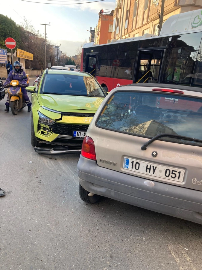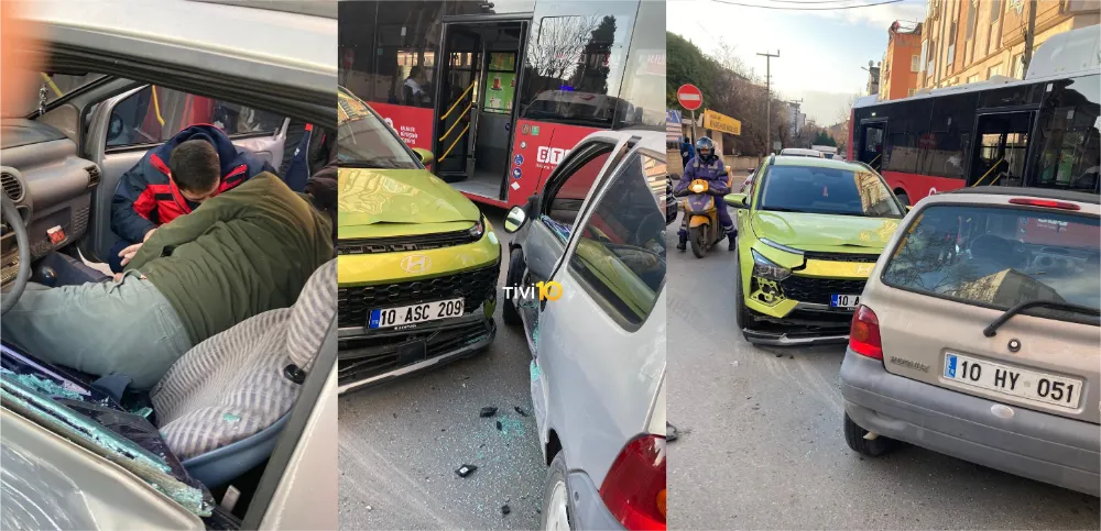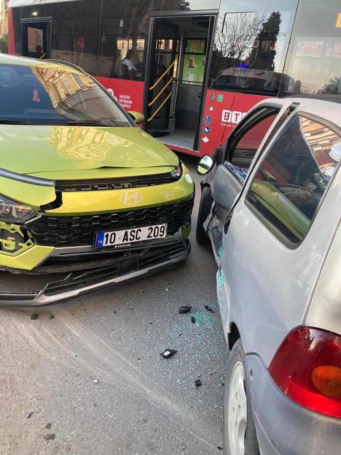 Kaza, Karesi ilçesi 1.Oruçgazi Mahallesi Altay Caddesi üzeri Koray Lisesi kavşağında meydana geldi. Kaza ihbarı üzerine itfaiye, sağlık ve polis ekipleri kaza mahalline sevk edildi. Koray Lisesi kavşağında İ.Ü. yönetimindeki 10 HY 051 plakalı otomobil ile yan yoldan gelen M.C.D. yönetimindeki 10 ASC 209 plakalı Hundayi marka otomobil çarpıştı.