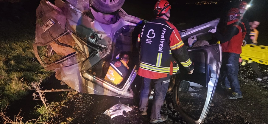 Balıkesir’de Gece Yarısı Kaza: Araç Takla Attı, 2 Yaralı Kurtarıldı
