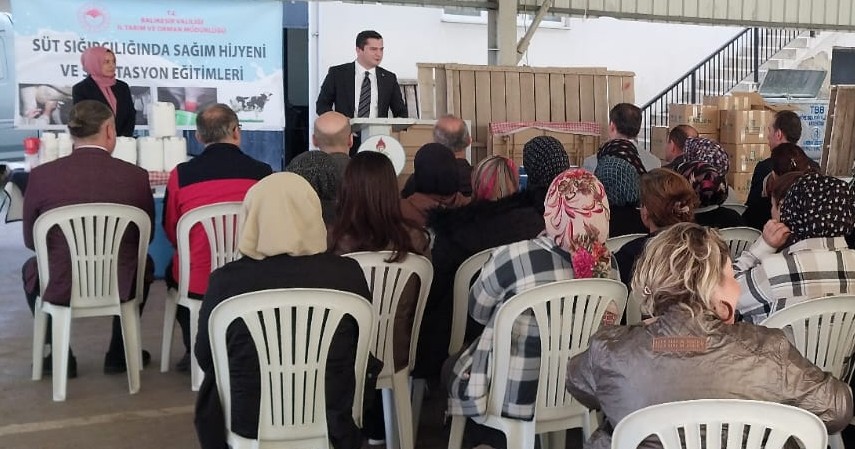 Balıkesir İl Tarım ve Orman Müdürü Dr. Hüseyin Düzgün, kadınların üretimdeki büyük rolüne dikkat çekerek, “Aldığınız sertifikalarla artık kaliteli süt üreteceksiniz. Siz üretimi bırakırsanız gelecekte hepimizi açlık bekler. Siz var olun ki biz de var olalım.” ifadelerini kullandı.