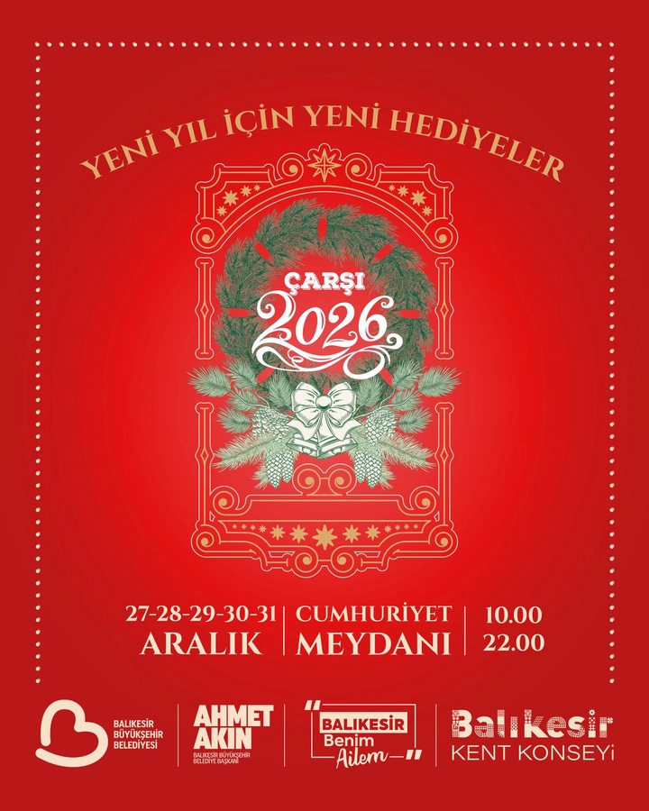 2026 yılı yaklaşırken, Balıkesir Büyükşehir Belediyesi ve Balıkesir Kent Konseyi iş birliğiyle düzenlenecek Yeni Yıl Çarşısı, sevdiklerine sıcacık hediyeler almak isteyen vatandaşlar için kapılarını açıyor. El emeği ürünlerin yer alacağı çarşı, yeni yıl coşkusunu Balıkesir’de hep birlikte yaşatmayı hedefliyor.