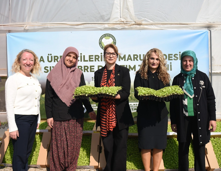 “Tarımda Balıkesir Modeli” sayesinde ürün çeşitliliğini artıran ve desteklerle üretim potansiyelini yükselten Balıkesir Büyükşehir Belediye Başkanı Ahmet Akın, 15 Ekim Dünya Kadın Çiftçiler Günü’nde kadın sera üreticilerine yüzde 75 hibeli 140 bin marul fidesi ve yüzde 100 hibeli 200 litre sıvı gübre desteği verdi. Bu kapsamda Balıkesir Büyükşehir Belediye Başkan Vekili ve Balıkesir Kent Konseyi Başkanı Sevinç Baykan Özden, BBB Genel Sekreter Yardımcısı Aslı Aynaoğlu ve BBB Kırsal Hizmetler Dairesi Başkanı Gülnaz Çelikyurt Uzuner sera üretimi yapan kadın çiftçilerle bir araya gelerek 15 Ekim Dünya Kadın Çiftçiler Günü’nü kutladılar.Seracılığı gelişmek ve üretimi desteklemek amacıyla verilen destekler sayesinde kaliteli ve verimli ürünler alınması hedefleniyor.
