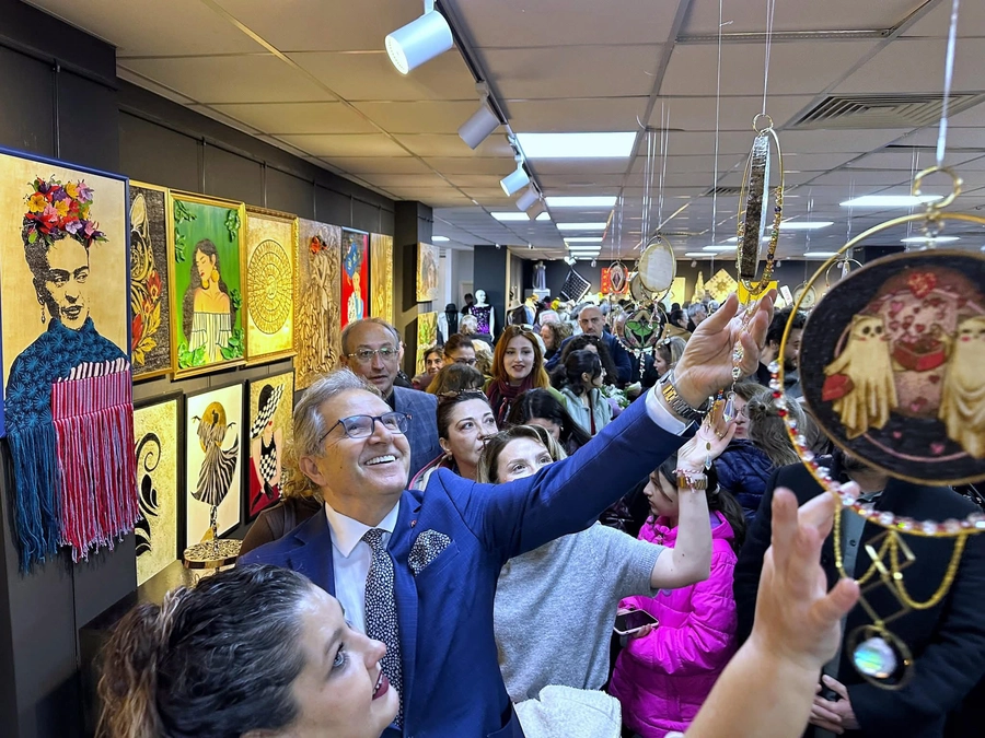 Bandırma Belediye Başkanı Dursun Mirza, Tunç Başaran Kültür Merkezi’nde El Sanatları Sergisi’nin açılışını gerçekleştirdi. Çok sayıda kursiyerin emeğinin yer aldığı sergi, ziyaretçilerden ilgi gördü. Belediye bünyesinde düzenlenen kurslara katılan 472 kursiyerin hazırladığı çalışmaların sergilendiği etkinlikte, 12 farklı branşta üretilen el sanatları eserleri beğeniye sunuldu. Sergide kursiyerlerin el emeği göz nuru ürünleri ziyaretçilerle buluştu.