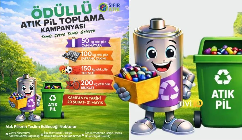 “Sıfır Atık Projesi” kapsamında hayata geçirilen kampanyada, atık piller Çevre Koruma ve Kontrol Dairesi Başkanlığı, İlçe Hizmetleri 1. Bölge Dairesi Başkanlığı (Bandırma) ve İlçe Hizmetleri 2. Bölge Dairesi Başkanlığı (Edremit) olmak üzere üç noktaya teslim edilebilecek. Teslim edilen atık pillerin karşılığında atık pilleri teslim eden kişilere çeşitli hediyeler takdim edilecek. 50 kilogram atık pil getirilmesi karşılığında cam matara, 100 kilogram atık pil getirilmesi karşılığında satranç takımı, 150 kilogram atık pil getirilmesi karşılığında top seti, 200 kilogram atık pil getirilmesi karşılığında ise bisiklet hediye edilecek. Atık Pil Toplama Kampanyasına son katılım tarihi 31 Mayıs 2026 Pazar günü olacak. Kampanyanın ödül töreni ise 5 Haziran Çevre Haftası Etkinlikleri kapsamında gerçekleştirilecek.