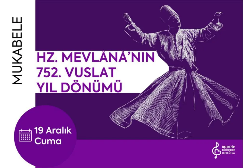 Balıkesir Büyükşehir Belediyesi tarafından Mevlana Celaleddin Rumi’nin vefatının 752. yıl dönümü kapsamında çeşitli etkinlikler düzenlenecek.