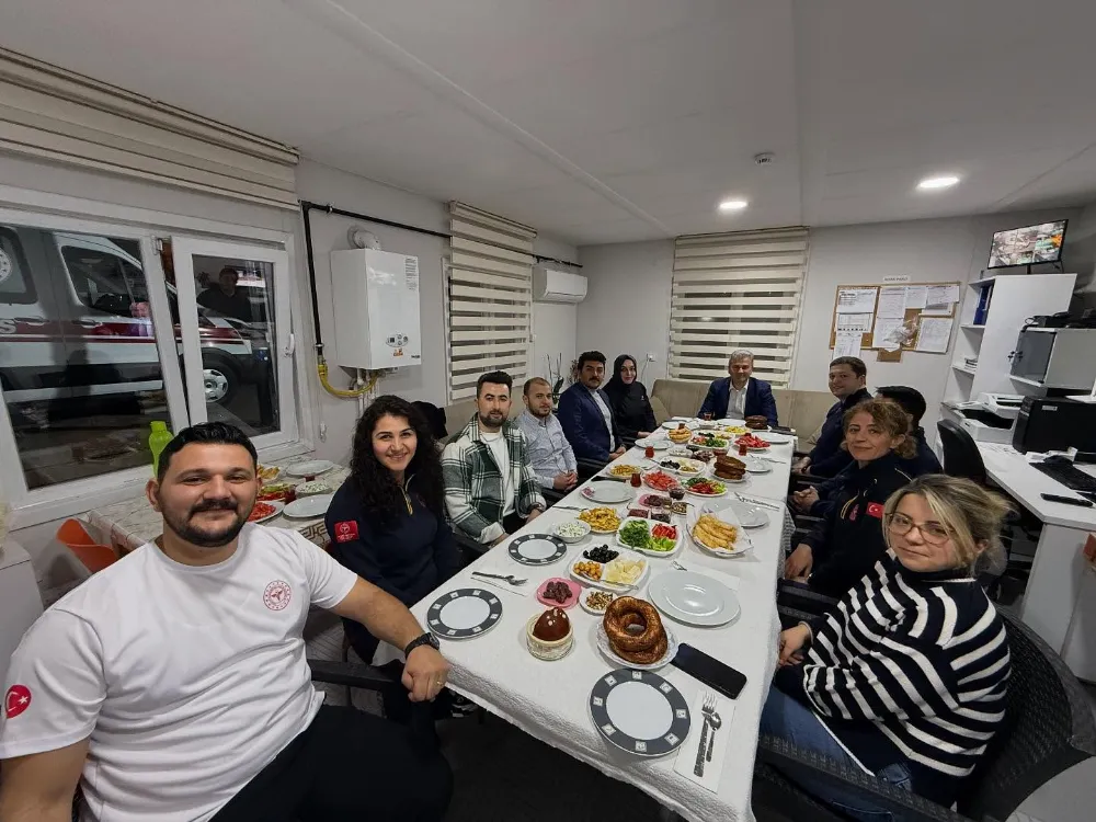 Sahur programına; Balıkesir İl Sağlık Müdürü Dr. Miraç Çavdar, Acil Sağlık Hizmetlerinden Sorumlu Başkan Yardımcısı Dr. Sadi Velioğlu, Balıkesir 112 Komuta Kontrol Merkezi Başhekimi Dr. Öğr. Üyesi Özlem Tataroğlu ile Sağlık-Sen Balıkesir İl Temsilcisi Nihat Erzi de katıldı.