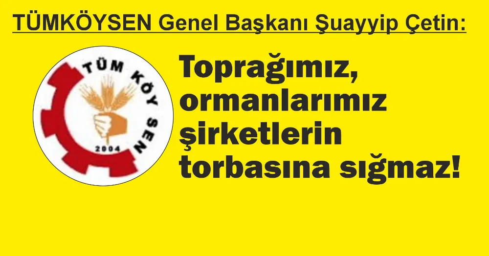 TÜMKÖYSEN Genel Başkanı Şuayyip Çetin, “Maden Kanunu ile Bazı Kanunlarda Değişiklik Yapılmasına Dair Kanun Teklifi”nin bugün meclise getirildiğini ifade etti. Başkan Çetin, “Bugün yeniden görüşmeye açılacak torba yasa ile sadece zeytinlikler değil, tarım ve ormanlık alanlar, meralar, yaylalar, maden ve enerji şirketlerinin talanına açılmak istenmektedir” dedi.