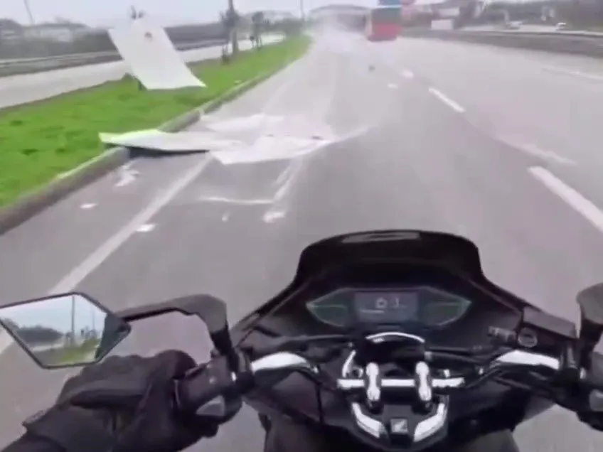 Balıkesir'in Bandırma ilçesinde seyir halindeki bir kamyonetin kasasındaki alçıpanların yola savrulması, trafikte tehlikeli anlara neden oldu. O anlar motosiklet sürücüsünün kask kamerasına yansıdı.