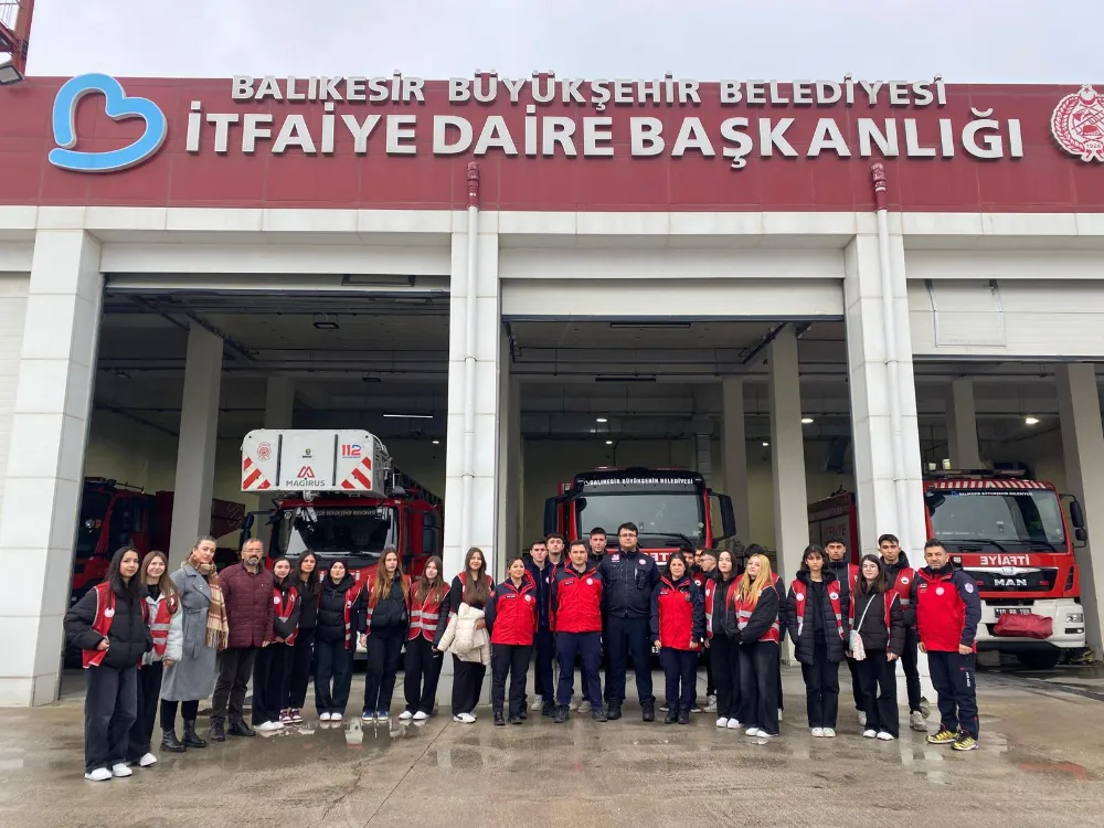 Saha programının ikinci bölümünde ise öğrenciler Balıkesir Büyükşehir Belediyesi İtfaiye Daire Başkanlığına bağlı BAKOM merkezini ziyaret etti. Burada itfaiyenin afet ve acil durumlarda üstlendiği görev ve sorumluluklar tanıtıldı. Yangın, deprem, sel ve trafik kazaları gibi olaylarda yürütülen arama-kurtarma çalışmalarına ilişkin bilgilendirmeler yapıldı. Öğrenciler, itfaiye araçlarını, kurtarma ekipmanlarını ve özel müdahale araçlarını yakından inceleyerek görevli personelden detaylı bilgiler aldı.