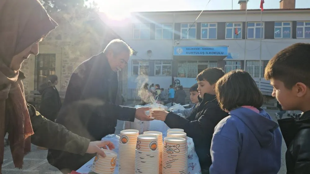 Sındırgı ilçesinde "Yerli Malı Haftası" Kurtuluş İlkokulunda düzenlenen renkli etkinliklerle adeta bayram havasında kutlandı. Programda, Sındırgı'nın yöresel ve şifa deposu lezzetleri arasında yer alan tarhana çorbası ile keşkek öğrencilere ikram edildi.